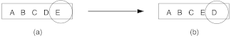 The crossover and the mutation operators affect the information contained in the chromosomes. The inversion operator does not change the information, but will change its presentation. Again, to understand this point, it is important to know that the position of a given gene in a chromosome has an influence on whether this gene will, or will not, be used by the different operators. For example, in the basic crossover presented at Figure 4, a gene which is in the middle of a chromosome has more chance of being involved in a crossover than the first or last gene. It is therefore sometimes interesting to change the way information is presented. Figure 6 shows a simple inversion operator if it is assumed that the value of the corresponding fitness function is not changed: two genes have been randomly chosen, here D and E, and their information exchanged.