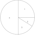 Proportional selection is based on the idea that an individual who is twice as good as another should have double the chance of being reproduced [1]. This selection is usually implemented using the “roulette wheel” strategy. The wheel is divided into \(n\) sections, n being the number of chromosomes. Each section is labeled from 1 through \(n\), and has an arc length directly proportional to the fitness value of the corresponding individual. This is demonstrated in Figure 2 for a population of 4 chromosomes.