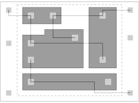Furthermore, terminals may also be fixed and representing links between the layout that have to be produced and “others layouts”. By example, for the VLSI problem, when the layout is representing a macro-cell with terminals needed for external connectivity (Figure 4).
